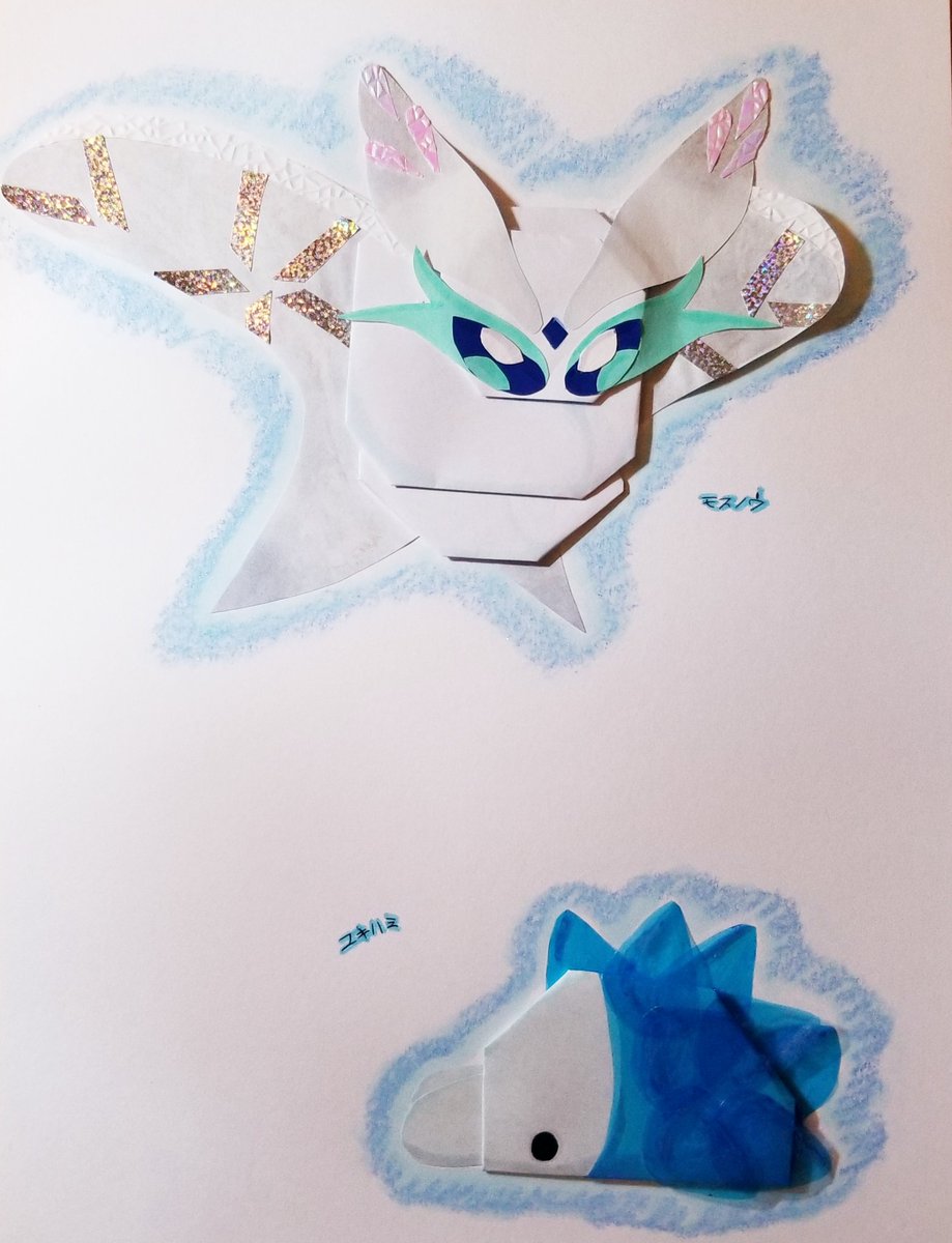 みり على تويتر ポケモン 折り紙モスノウとユキハミ ユキハミちゃんの氷の殻折り紙では難しい 透き通った折り紙は折りにくいし色の種類があまり無い 本当は薄い水色で作りたかったんだ